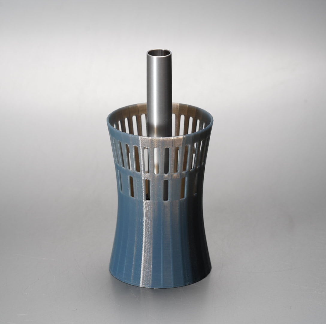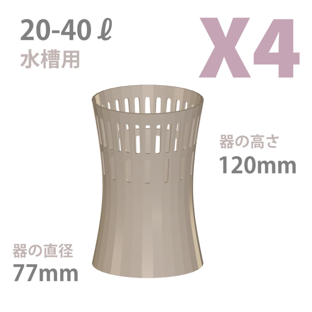 器のサイズ:直径77ミリx高さ120ミリ(大粒ろ過材とパイプを除く)