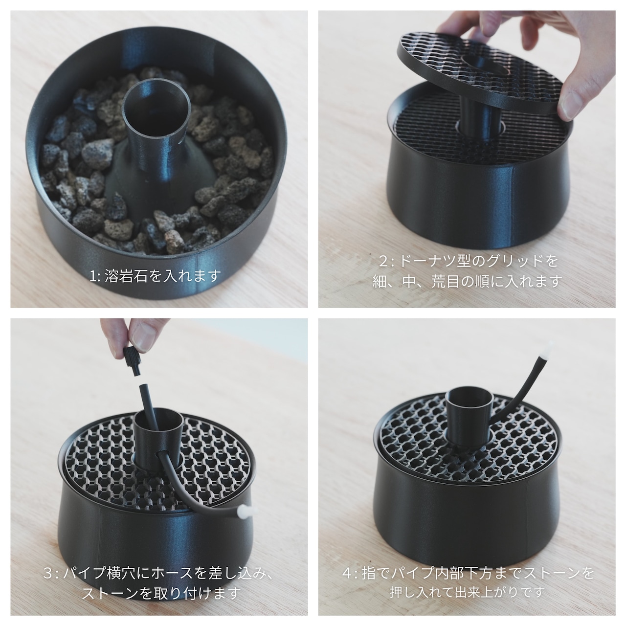 3:短期間で洗浄したい薬浴時などの場合→溶岩石は入れず、ドーナツグリッド3枚のみで使用